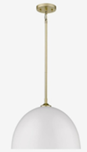 | Kitchen | Golden Lighting | Single light pendant. | 6956-L OG-WHT | 16”W x HGT TBD | White exterior Olympic Gold rod finish | See Plans for Locations. Lights centered over island width. Provide with LED 3000K bulbs | $ | RENDER, HARMON, NOVEL |