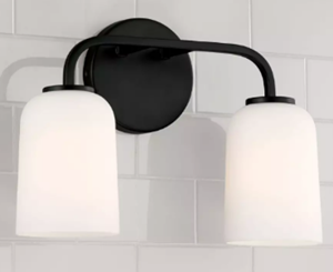 | Bathroom | Carlisle | 2 Light Matte Black with Opal Glass | LC005191 | Approx. 24” Wide & 16” Wide | Black | Two (2) 2-Light fixtures for double vanity. Provide with LED bulb. | $$ | NOVEL, HARMON, RENDER |