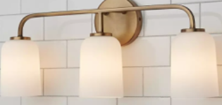 | Bathroom Vanity | Shades of Light | Verlice Vanity Light – 3 Light | Verlice Vanity Light – 3 Light | 23.5”x9.75” | Aged Brass | One for single sink over mirror. | $$ | NOVEL, RENDER, HARMON |