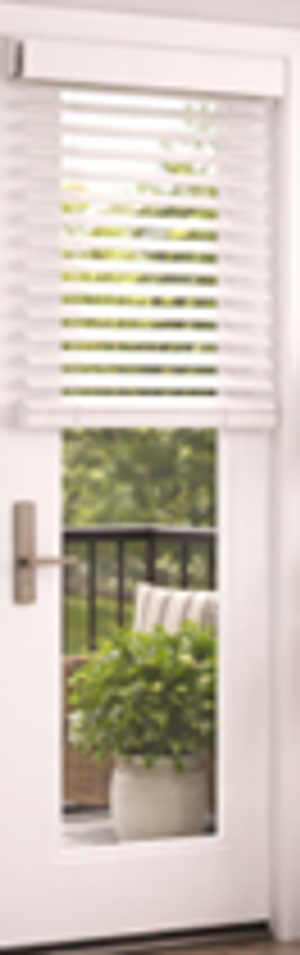 | Notes | Fastened to door by metal clips - smooth finish – contemporary valence option; notch blinds around door hardware as needed. Cordless Option |